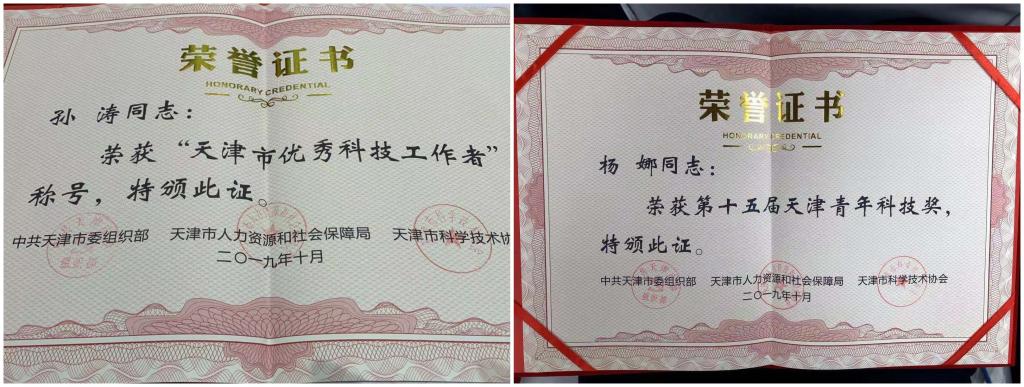 我院共有2名科技工作者获得表彰。其中,孙涛副教授荣获天津市优秀科技工作者称号、杨娜教授荣获第十五届天津青年科技奖。